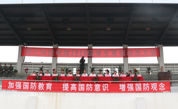 根据上级要求,结合我校实际,本次军训为期10天,2014级学生(专升本学生除外)编为1个军训团,下设8个营,58个连。教学内容包括队列、国旗护卫、内务卫生、礼节礼貌和擒拿等军事技能训练,国防、军事思想、军事高技术、信息化战争等军事理论学习,大学生安全教育等3部分。在本次军训中,学校继续探索大学生军训教导队模式,组织学校国旗班和我校从部队退役复学的大学生担任教官参与军训工作。
