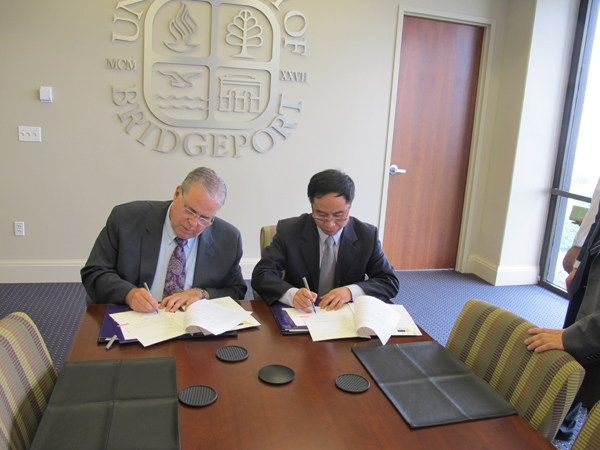 | 6月9至16日,副校长赵东福率团赴美国、加拿大进行教育考察,期间分别访问了美国史蒂芬斯理工学院、布里奇波特大学、加州州立大学富乐墩分校、加州大学洛杉矶分校和加拿大新不伦瑞克大学。 赵东福一行与史蒂芬斯理工学院副教务长康斯坦丁·卡萨皮斯等举行工作会谈,就化学工程与工艺、机械工程、电气工程等专业“3+2”项目及研究生教育学分互认项目交换意见。双方一致同意以化学工程与工艺专业3+2项目为突破口,商定共同努力今年7月底前完成课程对接。 代表团与布里奇波特大学就两校间正在实施的经济学专业(金融服务方向)中外合作办学项目进行交流,并签署两校合作举办经济学专业(金融服务方向)本科教育“2+2”和“3+1”项目补充协议。双方一致表示,将进一步加强互访与沟通,推动合作项目顺利运行。 赵东福一行与加州州立大学富乐墩分校副校长与凯丽·米乐等,就教学法培训项目、学生海外学习项目以及双向暑期游学项目深入交流,双方商定拟于2016年逐步启动上述项目。 在美国加州大学洛杉矶分校(UCLA),两校就暑期游学项目相关细节进行沟通,UCLA表示将对我校单独开放招生系统。 赵东福一行最后访问了加拿大新不伦瑞克大学,双方计划在制浆造纸、化学工程与工艺、生物质利用等多个专业领域开展教学与科研合作,并签署谅解备忘录。 图1 代表团与美国史蒂芬斯理工学院会谈 图2 赵东福与美国布里奇波特大学代表签署合作协议