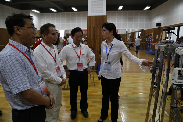本次比赛期间,安吉当地中学的学生也前来参观,一位学生盯着我校参赛团队的“苏东坡”机器人表演久久不肯离开,直呼“大开眼界”。