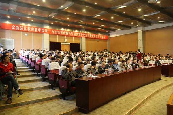 11月27日,学校召开2014年教学工作会议。校党政班子成员、正校级巡视员、校长助理出席会议。中层干部,正高职称人员,各学科、专业(专业方向)负责人,各教学团队负责人,各课程群(组)首席主讲教师,各引进课程项目负责人,骨干教师及新引进教师,校教学督导组全体成员,全体教学秘书(教务员),学生代表200多人参加会议。校党委书记王建华讲话。校长叶高翔主持会议并讲话。