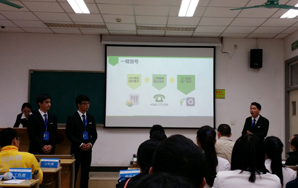 我校参赛项目“杭州执到宝环保科技有限公司”是一家利用智能手机软件应用平台,为城市居民提供垃圾分类回收服务,同时集废品回收、环保公益策划、APP广告推广及生活服务为一体的综合性环保公司。
