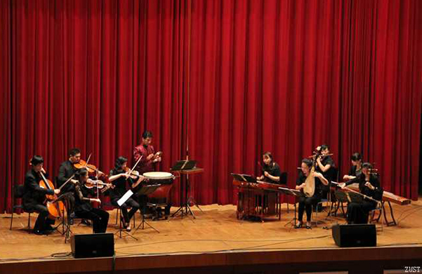 德国当地时间9月28日,为庆祝中华人民共和国成立65周年和首个全球“孔子学院日”,埃尔福特孔子学院在大学大礼堂隆重举办文艺巡演。国家汉办选派的来自中央音乐学院的10余名优秀师生代表为埃尔福特市市民呈现了一场兼容中西方古典乐器演奏特色之、精妙绝伦的音乐会。