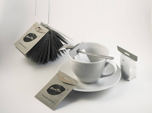 欧洲市场上销售的茶包都用一根棉线连接,以方便使用者将茶包从开水杯中拧取出来。用于连接茶包和棉线的是铁质的订书针。卢莉蒙和俞靓用茶勺代替棉线,在茶包上设计一个扁形的长孔,使得茶勺穿过长孔,让茶包浸泡在开水中。在欧洲包装生产界使用统一型号纸板的前提下,他们研发的三角形外包装设计相对于未改良的传统茶包装,能够多生产出160个包装盒,大大简化了生产流程,节约了生产成本。