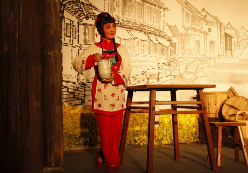 11月16日晚,由浙江省教育厅、文化厅、财政厅共同主办的高雅艺术进校园系列活动之一——浙江越剧团专场演出《九斤姑娘》在闻理园A4-122举行。四百多名学生欣赏了这场高水平的演出。