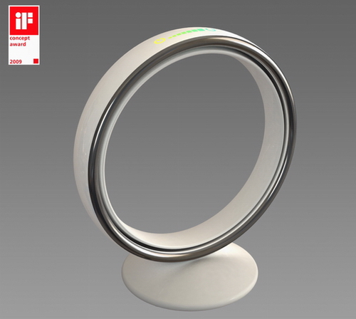 共有39个国家,1850个参与者的3200件参赛作品参加竞争,国际评委在初选的300份入围作品中挑选出了最终的100份“百佳作品Best 100%”。 陈姿孜设计的“Wind Circle(风圈)”是一款颠覆传统电风扇用射流原理设计的风力驱动器,由空心电机驱动的混流离心风扇带动空气以圆筒状从圆环内向前吹出,可以更大范围的使室内空气流动。风圈可以围绕底座中心作左右摆动,以便将风吹向比较宽阔的区域。