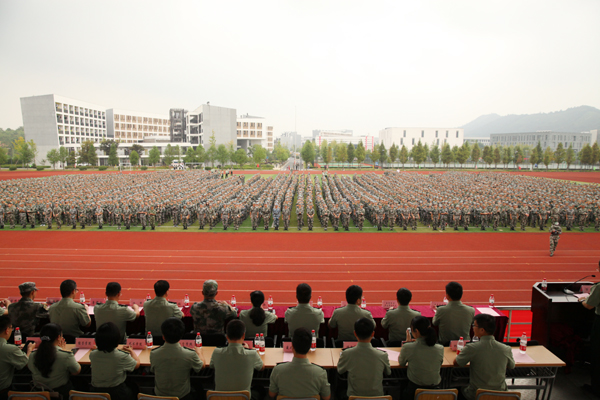 动员大会后,军训正式开始。各连根据军训统一安排开始训练任务。(人武部 程利群/文 学生记者 林姝霓/摄)