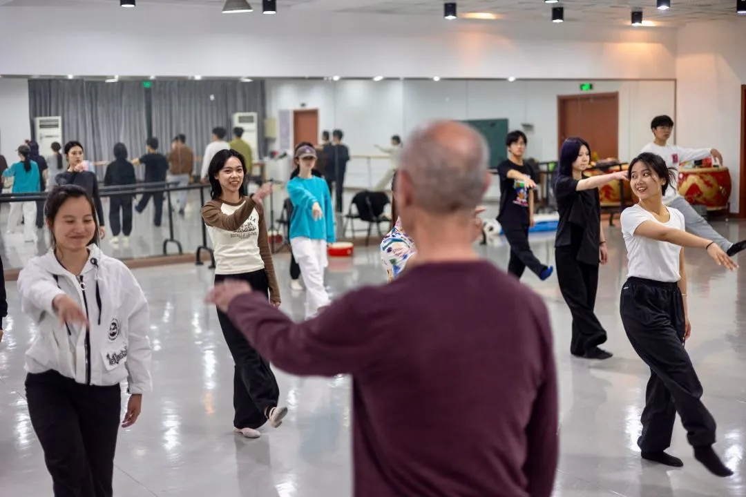 讲座之后,Thatcher教授前往西和舞蹈排练厅,举行即兴舞蹈工作坊,亲身示范了相关舞蹈动作,在他的带领之下,到场同学都积极参与到舞蹈动作的练习当中,很多人完成了自己的舞蹈“初体验”。(人文学院 学生记者 蓝欢/文 李乾诚/摄)