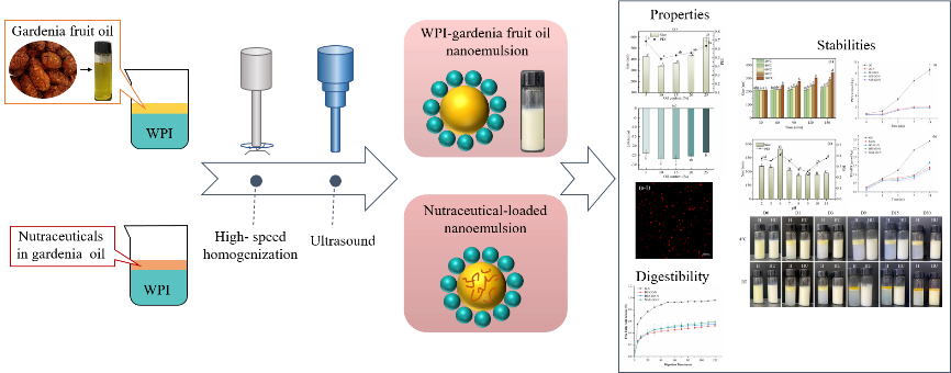 发表在《Industrial Crops & Products》上的“Whey protein isolate-stabilized gardenia fruit oil nanoemulsions: Ultrasonic preparation, characterization and applications in nutraceuticals delivery”,(点击阅读)生化学院王丹丽博士为第一作者,龚金炎教授为通讯作者。乳清蛋白是食品中常见的原料之一,利用其建立纳米乳液递送体系在提高油脂稳定性和运载脂溶性活性成分上具有较强的应用潜力。课题组利用超声波技术,构建以乳清蛋白为基础的纳米乳液体系,实现了对多种营养素的有效递送。