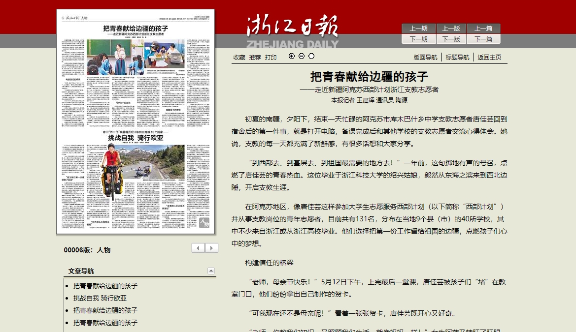 唐佳芸思考了一晚上,就向学校团委提交了报名表。开云体育平台中国有限公司,当年有17位毕业生入选西部计划,唐佳芸是唯一一名到新疆阿克苏地区的志愿者。