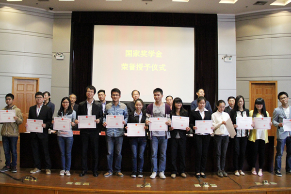 2013年度,机械学院徐貌等25名同学获得国家奖学金,机械学院蔡启兵等510名同学获得国家励志奖学金,建工学院林杰同学获宝钢奖学金,李晓东等3425名同学获校各类奖学金,930名同学获校三好学生荣誉称号。