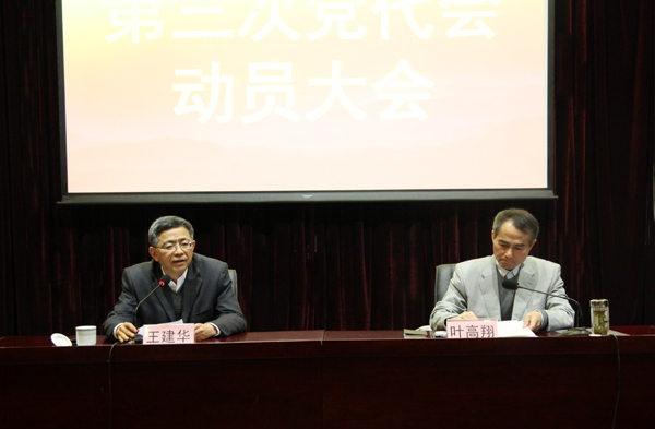 4月21日下午,学校召开第三次党代会动员大会。校党委书记王建华,校长、校党委副书记叶高翔等校党委委员,正院级巡视员,校长助理出席会议。校纪委委员,党员中层干部,各党总支、直属党支部委员,组织员,党支部书记,师生党员代表近200人参加。