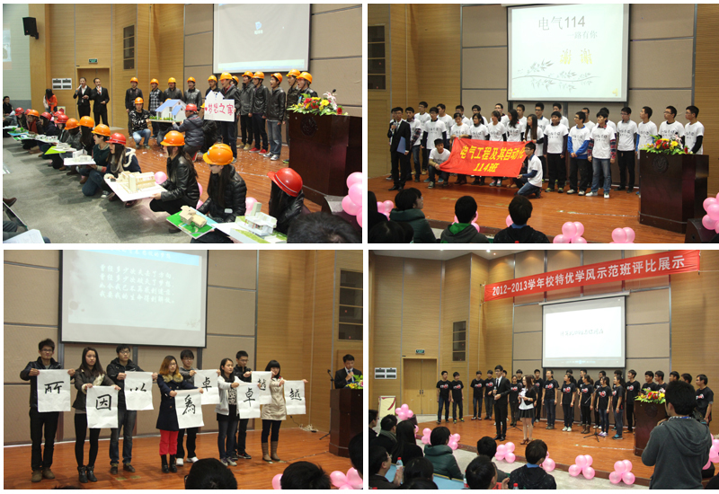 12月4日晚,2012-2013学年“校特优学风示范班”评比展示活动举行。校党委副书记周加敏出席并讲话。相关职能部门负责人、二级学院学生工作负责人、全体辅导员和参评班级代表等近600人参加活动。