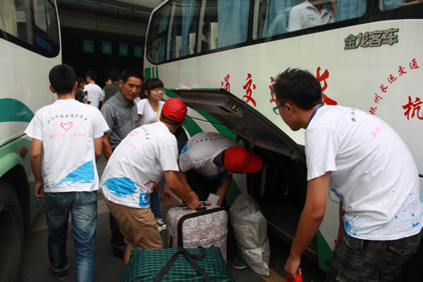 早上5点半,搭载着志愿者的接站大巴就从小和山驶向了杭州城站火车站、东站火车站和九堡客运中心。7点未到,学校和两个公寓区门口都已站满了热情的学长学姐。当天,数不清的小红帽在车站和校园内忙碌。