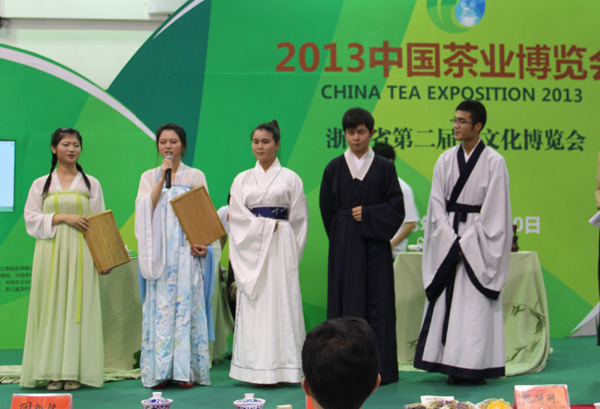 日前,2013中国茶叶博览会在杭州和平会展中心举行,2013中国茶叶博览会全民茶艺公开赛决赛在博览会期间进行。经过初赛激烈竞争,来自全国各地的十余支参赛队伍入围决赛为现场观众作精彩表演,我校学生社团“七碗茶社”入围本次决赛亮相茶博会。