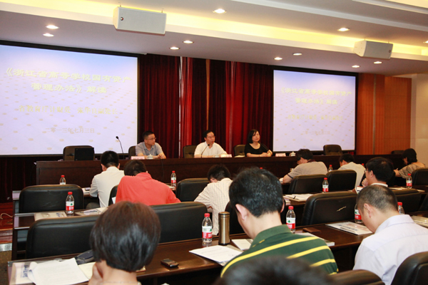 7月3日上午,2013年学校国有资产管理培训交流会首场讲座开讲。副校长赵东福作培训动员,省教育厅计财处副处长张华良受邀就《浙江省高等学校国有资产管理办法》作辅导报告。学校各单位分管资产和采购工作的负责人、全体资产管理员和采购联系人、相关职能部门工作人员参加培训。