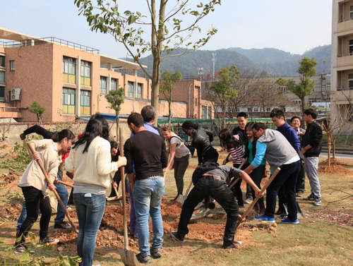 3月12日植树节来临之际,学校开展师生集体植树暨“毕业思源,立业思进”2013届毕业生毕业林种植活动。师生挥锹培土,在东和学生公寓共种植180余株桂花、枇杷、无患子等苗木。