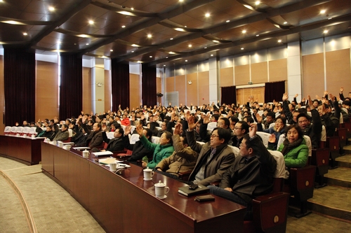 1月11日,学校召开第六届教职工代表大会专题会议。校党政领导班子成员,全体教代会代表、部分特邀代表、列席代表与会。会议听取和审议校长杜卫所作的“绩效工资实施办法的情况报告”,并投票表决通过《浙江科技学院绩效工资实施办法(草案)》。校党委书记王建华作总结讲话。会议由副校长吕进主持。