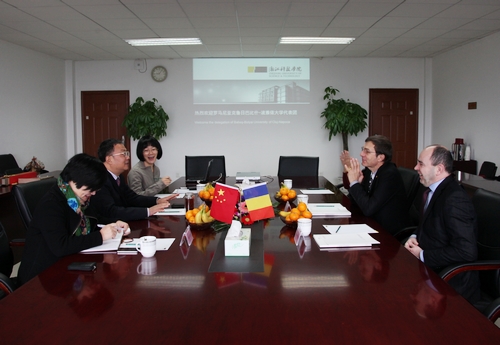 12月20日,罗马尼亚克鲁日巴比什-波雅依大学校长约安•鲍伯 (Ioan Aurel POP)、副校长约安•博洛万(Ioan BOLOVAN)在孔子学院中方院长冯少中陪同下来我校访问。校长杜卫代表学校热烈欢迎罗马尼亚来访客人,并与之进行友好会谈。