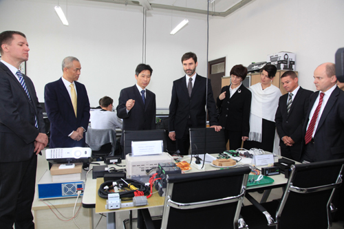 布拉纳尔对我校的热情接待表示了感谢,并期望日利纳大学能与我校开展合作。塔蒂安娜•佐瑞可波娃介绍了日利纳大学的办学历史、学科设置、科研领域及国际合作等情况。吕进向来宾介绍了我校的办学情况,并表达了合作愿望。随后,代表团一行还参观了我校机械学院微光学制造技术研究所和电气学院中德汽车电子研究所。