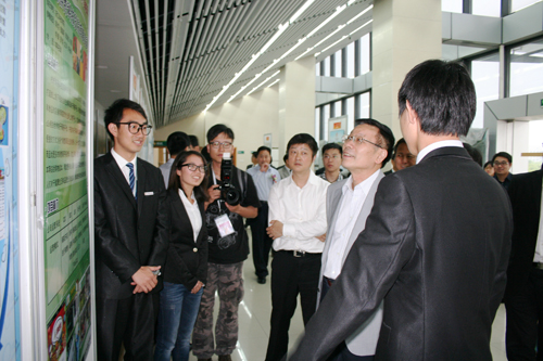 颁奖典礼前,陈加元等参观了竞赛项目的展览,在我校展台前,他认真听取了项目介绍,并鼓励学生继续努力。我校创业团队触梦科技团队的易触e-Touch生活服务向导系列产品和翔秀科技的线上线下蔬菜销售平台受到多家企业关注,并草签了合作意向。触梦科技团队还接受了嘉兴电视台的采访。