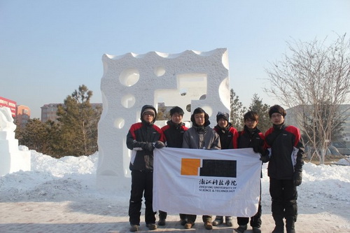 在为期4天的比赛中, 50支代表队参赛选手们在一块块长3米、宽3米、高3.5米的人造雪块上进行雕刻创作。大赛组委会评委从雪雕主题、艺术表现力、创造性和雕刻技巧等四方面对作品进行评审。 我校代表队由艺术学院张志远、王涛、吴立斌、杨苏琴、钭新铮等5名学生组成,作品《变是唯一的不变》设计灵感主要来源于电影《谁动了我的奶酪》,“变是唯一的不变”便是该影片中的一句经典名言,队员们希望作品传递出一种现代气息,让人感受到一种勇往直前的生活态度。一位参赛队员说:“此次大赛让我认识到了坚持的可贵以及团结的力量,这对我以后的学习和生活有着深远的影响!”