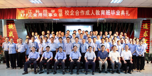 6月29日,我校与APP工业用纸事业部校企合办的成人大专班举行毕业典礼,110余名学员获得学历。副校长赵东福出席毕业典礼。成教学员、轻工学院负责人参加。