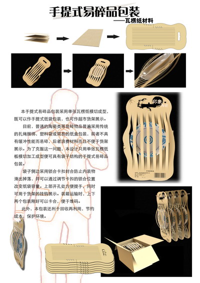 图为获得全国包装结构设计竞赛一等奖的作品“手提式易碎品包装”