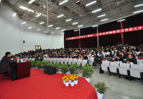 省环保厅和团省委相关部门同志,我校离退休老同志代表,省、市、区人大代表、政协委员,全体中层干部,党总支(直属支部)委员,民主党派、知联会、留联会负责人,部分党代会和教代会代表,学生代表及来自浙江大学、浙江工业大学等高校的大学生环保社团成员共600余人参加报告会。