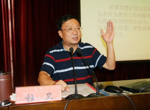 杜卫在题为“领会《教育规划纲要》精神,加快特色鲜明的高水平应用型大学建设”的报告中,从指导思想、工作方针、战略目标、战略主题、关于高等教育等几方面对《教育规划纲要》作了简要介绍。他着重阐述了自己的两点学习体会:第一,要坚持党的教育方针,把育人作为学校一切工作的核心,要坚持人才培养工作的中心地位;第二,要坚持特色发展,满足学生的发展要求,适应社会对人才的多样化需求,提高学校的社会贡献率、知名度和美誉度。杜卫从“国际化”、“应用型”、“高水平”3个关键词对我校如何学习贯彻《教育规划纲要》作了解读。他指出,《教育规划纲要》为我校努力办好特色鲜明的高水平应用型大学提供了强有力的政策保证,下一步,我们要认真落实《教育规划纲要》精神,扎实推进学校科学发展。