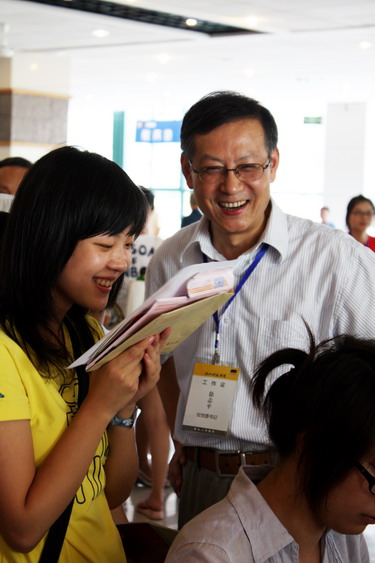 今年新生报到仍在西和公寓、东和公寓两个报名点同时进行。一早,各学院、部门负责人,工作人员和志愿者同学就开始有条不紊地做好新生接待和报到工作。校党委书记徐志平等校领导来到报到现场检查迎新工作。