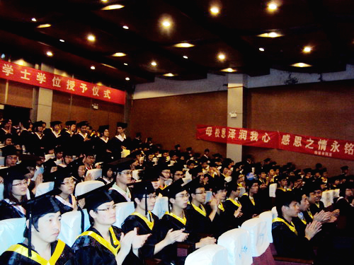 校党委副书记胡浙平宣读学校《关于表彰2010届优秀毕业生和“两项计划”志愿者的通报》。江财明等128名同学获省级优秀毕业生称号、金晶等424名同学获校级优秀毕业生称号、傅娟娟等4名同学入选“两项计划”志愿者。校党政班子成员为学生代表颁发荣誉证书和毕业证书。