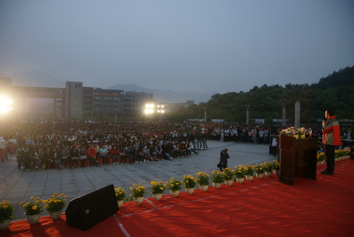 5月14日,第36期优秀企业家进校园暨新东方集团“2010中国大学生励志系列公益讲座——梦想之旅”大型活动举行。新东方集团董事长俞敏洪携旗下知名讲师任治远为我校师生带来了一场精彩的演讲。副校长赵东福、校党委委员毛建卫出席活动。