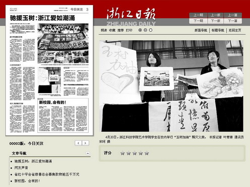 4月21日出版的浙江日报对我校师生捐款、义卖等进行了报道。