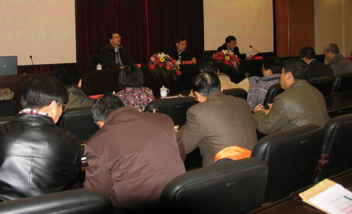 1月25日,学校召开2009年度校党政领导班子和领导干部考核及述职述廉大会。省委教育工委委员、干部处处长王玉庆,省委组织部干部三处副调研员应方彩,省教育纪工委副书记、监察办主任陈金方等出席了大会。会议由校党委书记徐志平主持。校党政领导班子成员、中层干部、教代会执委会成员、正高职称人员、民主党派负责人、老领导代表等参加了会议。