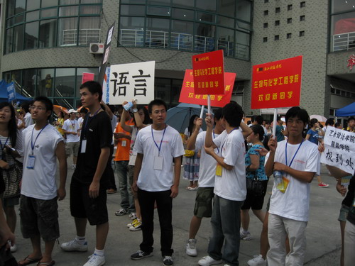 报到当日,各项工作有条不紊。各单位教职员工和青年志愿者成了“迎新大军”中的主力军,他们奔波在车站和校园间,行走校内各处,为新生及其家长服务,介绍学校的方方面面。