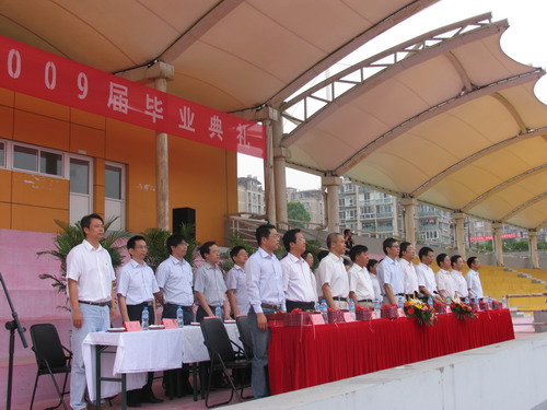 6月24日上午,2009届毕业典礼隆重举行。校党政班子成员徐志平、杜卫、胡浙平、陈根芳、吕进、赵东福、鲁凤、毛建卫、冯军、李明,校长助理郑友取在主席台就座。校长杜卫主持毕业典礼。各二级学院及相关部门负责人参加了典礼。