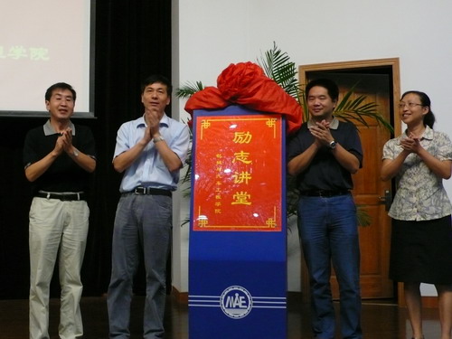 9月5日晚,机械学院“励志讲堂”成立仪式暨第一期报告会在图书馆东楼报告厅拉开序幕。党委副书记陈浩等领导为“励志讲堂”揭牌。国家励志奖学金、校奖学金获得者机制064班陈德宝,浙江省大学生联合学生会副会长、我校学生会主席陈誉天,入围全国大学生机械设计大赛、省才艺大赛三等奖得主夏思,校园创业佼佼者、校“十佳”年度人物吴昊等从不同角度,谈了他们的励志经历,使新生受益匪浅。