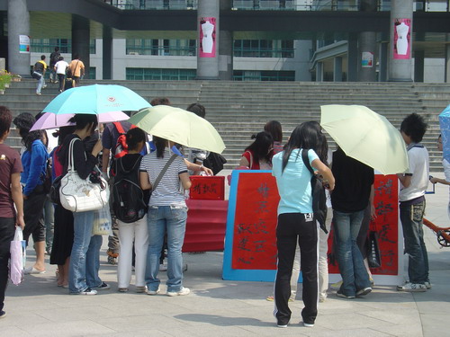 5月14日,艺术学院分团委在精艺广场设点接受学生捐款。