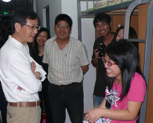 5月10日,最后一批学生入住西和公寓后,当晚,校党政领导班子成员分组走访了学生寝室。