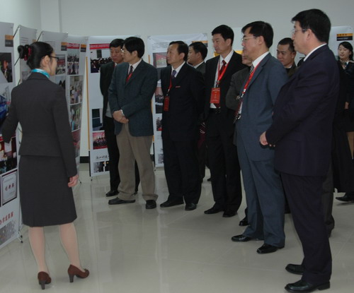 12月24日上午汇报大会结束后,约10时45分,教育部本科教学工作水平评估专家组成员在校党政领导班子成员陪同下来到图书信息中心大楼,参观办学成果展。