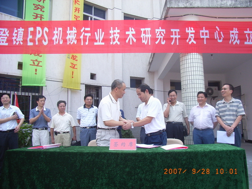 新登镇泡沫塑料行业技术研发中心现场与我校、杭州市机械科学研究院签署了科技战略合作协议。吕进代表学校在协议上签字。
