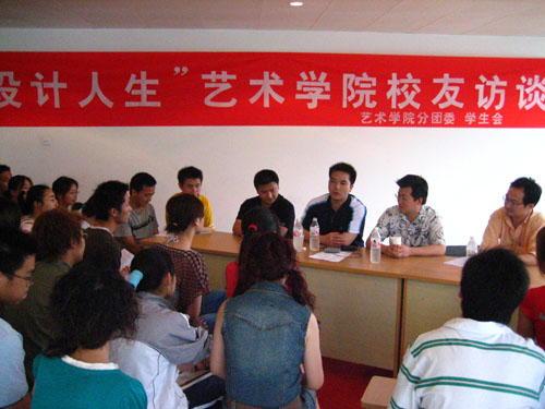 访谈会上,四位校友深情回忆了美好的大学生活,重点介绍了各自的创业背景和艰苦的创业经历,使广大同学更深地意识到就业形势的严峻性。校友们从分析当前艺术设计专业的就业形势入手,就如何更好地促进学习与就业的接轨谈了自己的认识和体会,使同学们对如何更有效地利用宝贵的在校学习时间有了更加明确的认识。最后,几位校友还就同学们关心的问题一一做了回答。