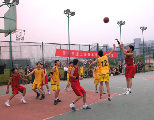 为丰富教职工业余生活,庆祝“五·四”青年节,近日,学校第二届青年教职工篮球比赛拉开战幕。这次比赛共有十一个分工会报名参加,所有比赛全部安排在小和山校区篮球场上进行。球场上,只见一字排开的几块场地同时开战,场面煞为壮观。平时斯斯文文的“教书先生”,一到场上,个个都变成了生龙活虎的“姚明”、“科比”、“麦迪”……,他们断球、抢篮板、上篮……,精彩的场面,吸引了众多师生驻足观看。院长杜卫教授、副院长龚建立教授、蒋家新教授也绕有兴致的代表自己的队伍参加了比赛,他们在场上矫健的步伐,灵活的身手,不断赢得场下师生的喝彩。由体军部老师担任的裁判在场上公正的判罚,合理的尺度,标准的动作也受到师生们的称赞。