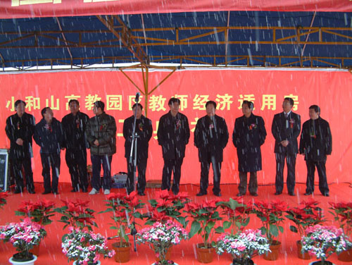 12月28日,小和山高教园区教师经济适用房开工典礼在施工现场隆重举行。浙江省教育厅厅长候靖方在开工仪式上讲话。他说,小和山高教园区教师经济适用房的开工是园区建设的一件大喜事,是政府献给教师们的一份新年贺礼。按照省政府规划,小和山高教园区完全建成后在校生规模将达5万人,在园区工作的教师将达1万名。高教园区要取得更大发展,提升层次,关键在人才和教师。高教园区经济适用房的开工将对改善园区教师住房条件,吸引人才到园区工作起到促进作用。