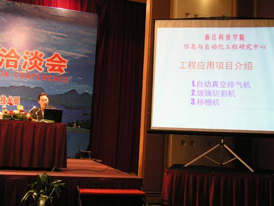 2004西湖博览会暨西湖区第七届科技合作洽谈会于2004年10月29日在世贸中心举行。杭州市人民政府孙景淼副市长、西湖区人民政府许迈永区长、西湖区科技局林旭阳局长等领导出席了开幕式。我院副院长蒋家新教授作为特邀嘉宾在主席台就座。与西湖区进行科技合作的十多家高校和科研院所以及西湖区的几十家企业参加了洽谈会。信电系蒋惠忠副教授和科技处有关老师应邀参加了此次活动。会上,信电系蒋惠忠副教授就自动控制系统开发技术作了科技信息发布。